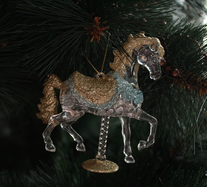 Эта карусельная лошадка, пока единственная ёлочная игрушка- лошадка у нас. Но очень надеюсь, что не последняя. Уж очень мне нравится, как она смотрится на елочке.