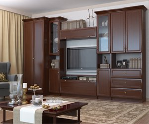 Очень зависит от освещенности комнаты, цвета обоев, штор, дивана. Если у вас южная сторона, то можно и темный брать, а если солнышка мало, то лучше светлый. У меня южная сторона, солнышко весь день, довольно светлые обои, шторы, Мебель — венге. Смотрится абсолютно не мрачно.