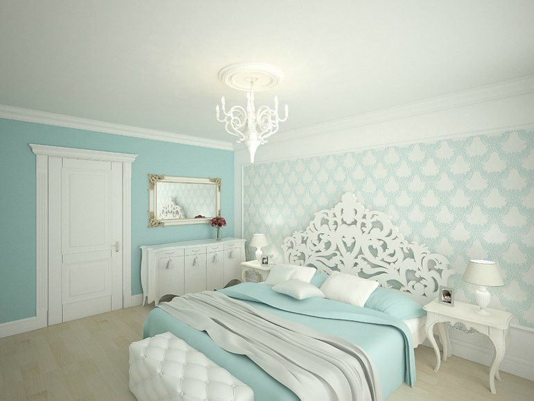 Ну и взяла тут спальню девушки, мне очень нравиться цветовая гамма. Тоже хочу бело-голубую,но основной будет молочно белый :)) т.к комната 11,9 м.