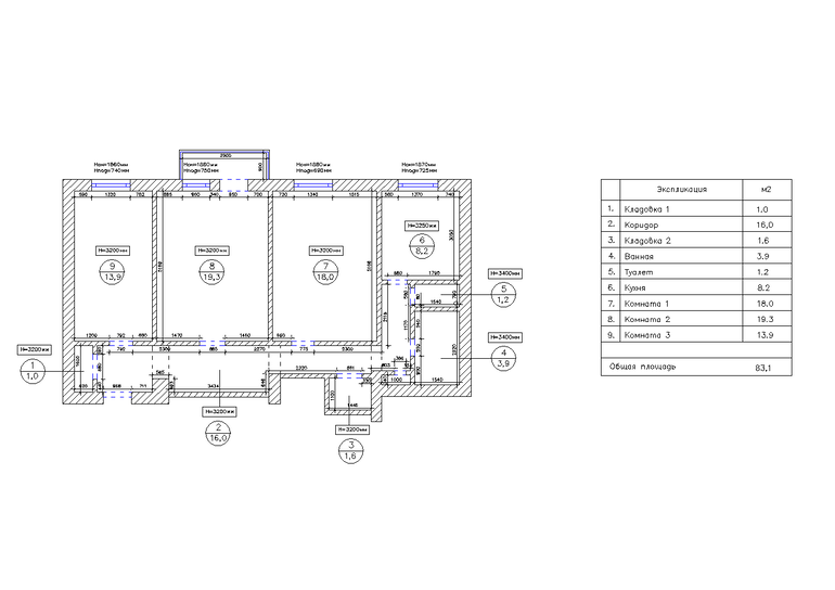 Квартира 83 м2 в старом доме, с потолками 320см. Необычная коридорная планировка говорит о том, что здесь раньше была коммуналка.