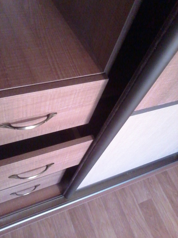 Это нам устранили укоротили переднюю стенку выдвижных ящиков. Но теперь появилась щель. Нам мебельщики сказали, что внутри шкафа это допустимо по ГОСТу.