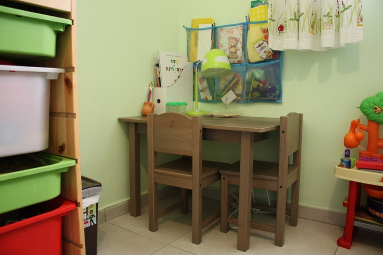 Рабочий уголок. Розетки в том месте не оказалось, поэтому под столом прячется удлинитель, который при необходимости протягивается к розетке под окном. Икеевские кармашки очень пригодились (пора бы навести там порядок среди карандашей, наклеек, ножниц и прочих очень нужных вещей). Из левого угла выглядывает коричневая Персональная Мусорка для бумажек и всего, что не жалко выбросить.