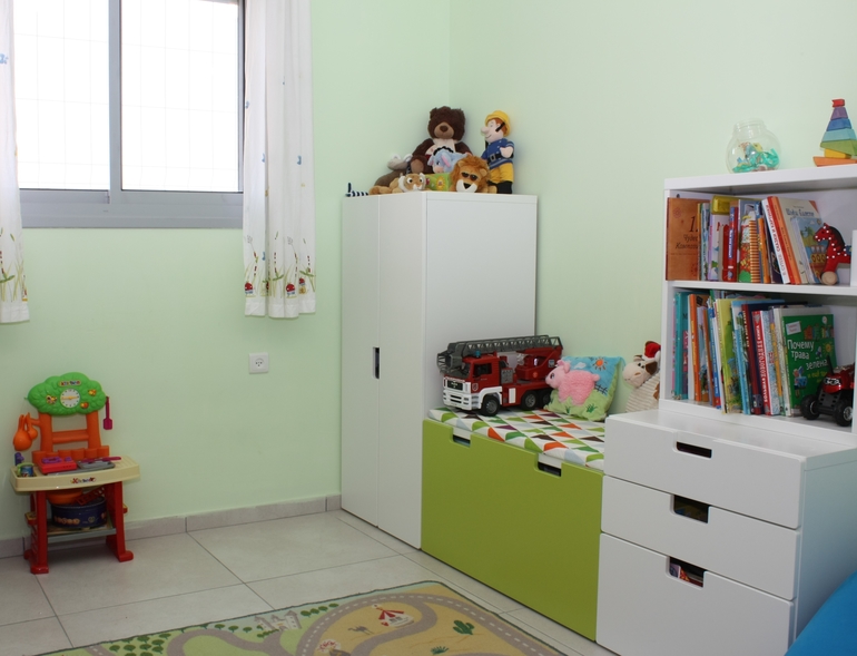 Интерьерное решение детской комнатыВот такая получилась у нас комната. К определённому стилю не привязывались, хотелось светлого и спокойного. На полу плитка - от застройщика, стены покрашены в светло-зеленый. Еще не всё готово - нет часов, плаката с буквами в рамочке, не повешена люстра. Не обошлось и без просчётов.