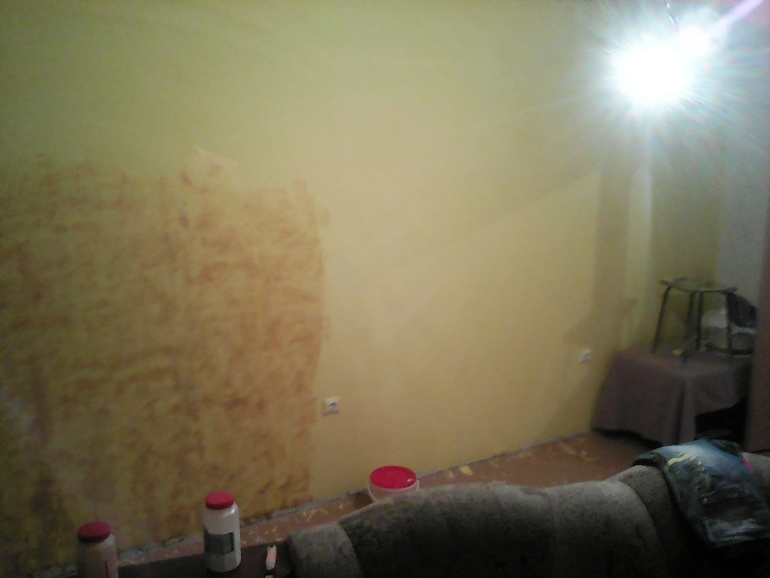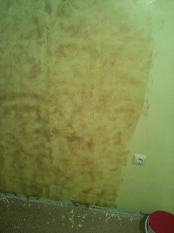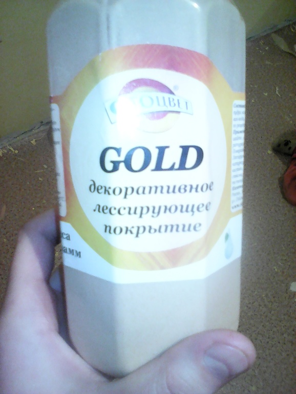 Водоэмульсионкой сэмитировали шпаклевку и поверх ласирующим покрытием голд покрасили.