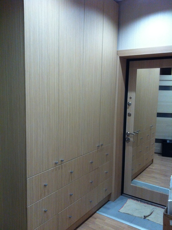 Интерьерное решение прихожих, коридорчиковПервую уже показывала вам. Наконец мебельщики привезли зеркальную дверь, теперь могу и вторую показать. А также немного фото с зарождающегося интерьера. Зарождающегося, потому что мебельщики еще доделывают свою работу в квартире, переедем позже.