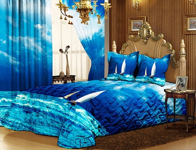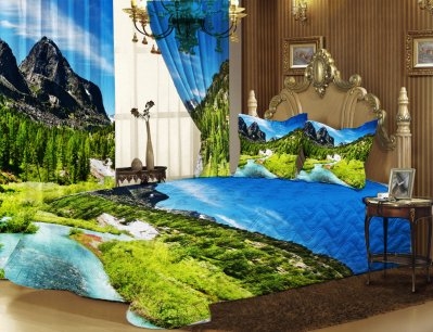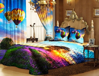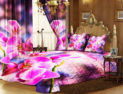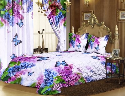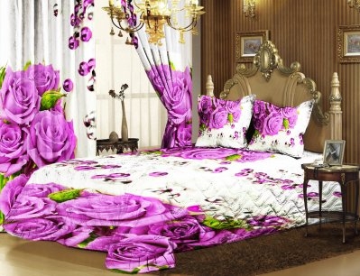 Не решила, просто вот именно на этих фото- жесть. Покрывало, наволочки и шторы одинаковой, яркой и броской расцветки- полная безвкусица. Другое дело, когда они нежных и не броских тонов, а с такими цветами- перебор