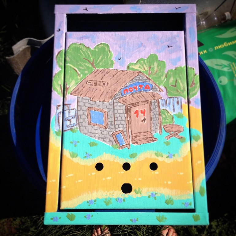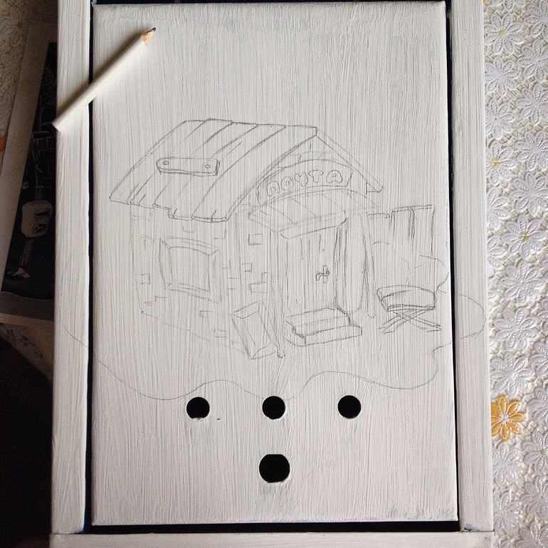 Так все просто: купила самый дешевый почтовый ящик, металлический, закрасила его белой краской, набросала карандашом рисунок и раскрасила. Потом лаком покрыла. У меня вообще был лак для акрила, тоже оставался, но я его через год открыла а он в кашу превратился . В итоге пришлось лачить тем, что было в наличии. Лак для паркета))) рисунок выдержал)) на фото он еще без лака. Сейчас сохнет.