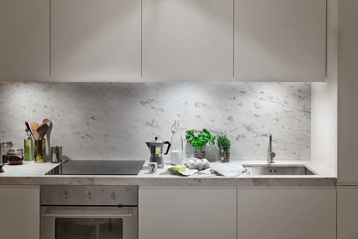 Столовые приборы в ящиках на 30 см с обоих сторон. Тандембоксы под единым фасадом.. как на фото. Чистые полотенца над духовым шкафчиком.