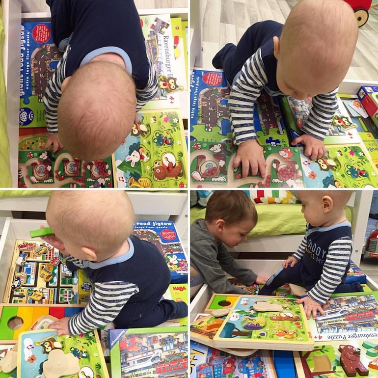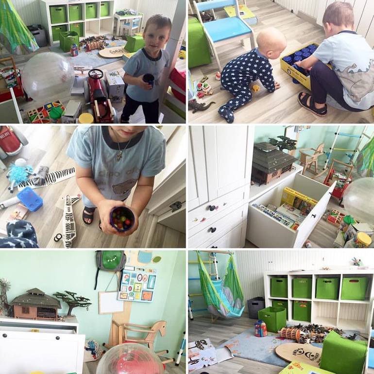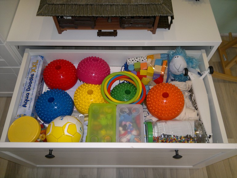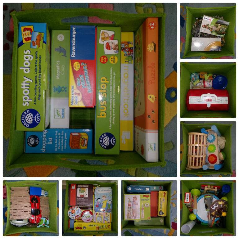 Игрушки разделила по тематикам: машинки, настольные игры, музыкальные инструменты + мелочевка, фигурки животных, кухня/магазин + аптечка.