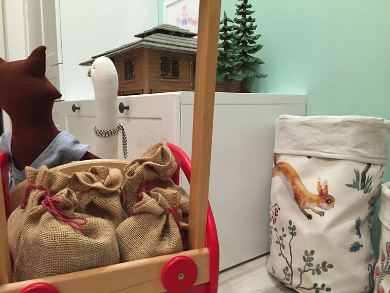 Деревянные игрушки и погремушки малыша переселились в сказочные мешки