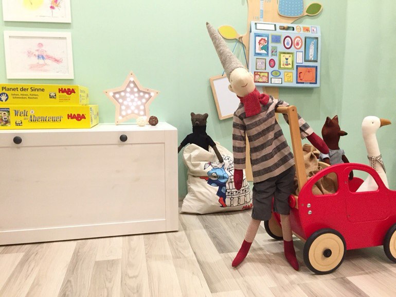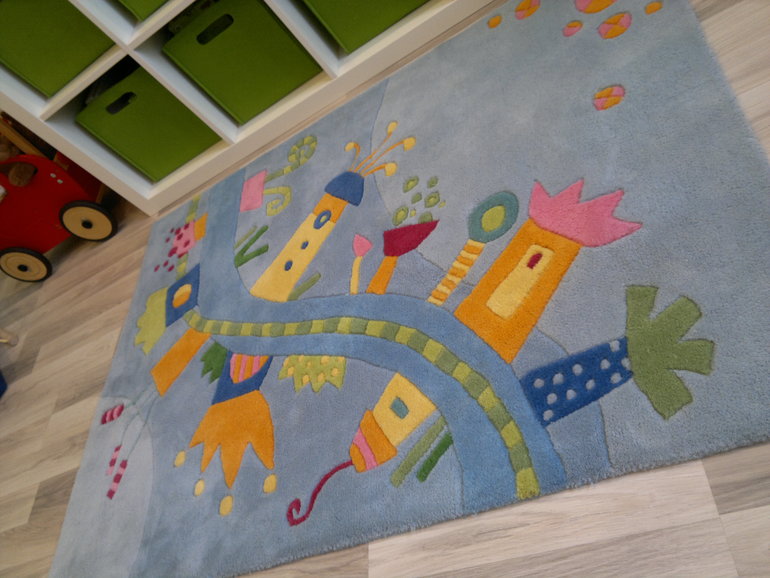 На полу ковер HABA Страна снов из новозеландской шерсти. Я не хотела большого размера, т.к. для некоторых игр нам нужен ламинат, а на ковре мы играем в настольные)