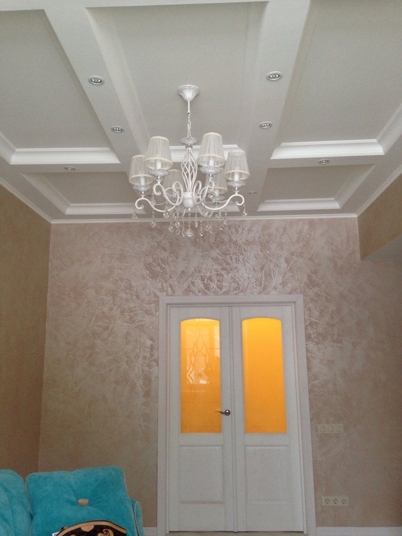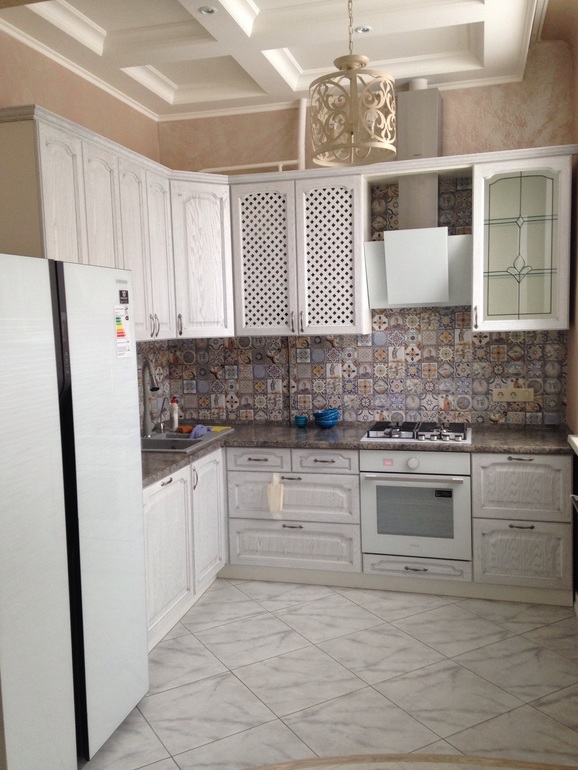 Есть гостиная/кухня в непонятнокаком стиле, планировалась современная классика) Кухня белая с патиной, столешка и плитка серые, фартук серо-голубой. В гостиной пока диван голубой и еще на подходе шкаф-купе бело-бежево-золотой. Стены тоже бежевые. Фото под кат