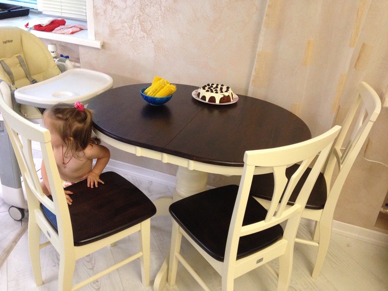 Ну и по размерам мы ограничены расстоянием до холодильника. Нужен стол в идеале 80-90 на 120, желательно раскладной.