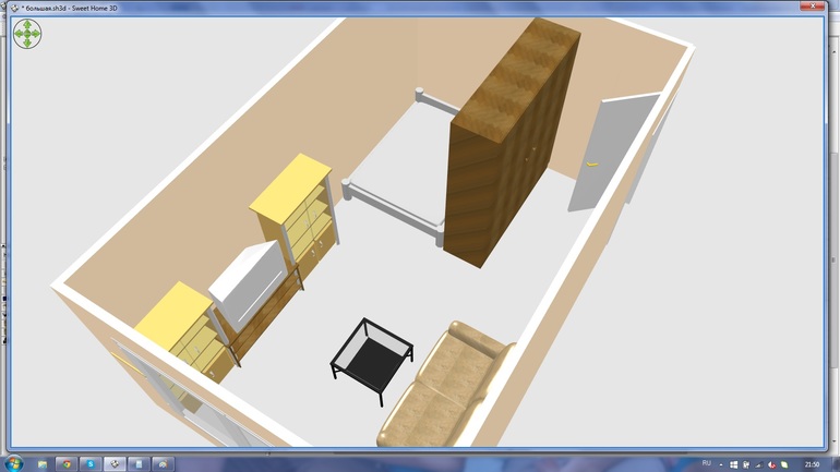 Задумались об отдельном уголке - спальне, но не слишком-ли тесно получается, да и шкаф прям напротив входа, т.е. для прохода остается узкий (1 метр) коридорчик, а опять-же кровать как застилать? Или поставить туда угловой диван?