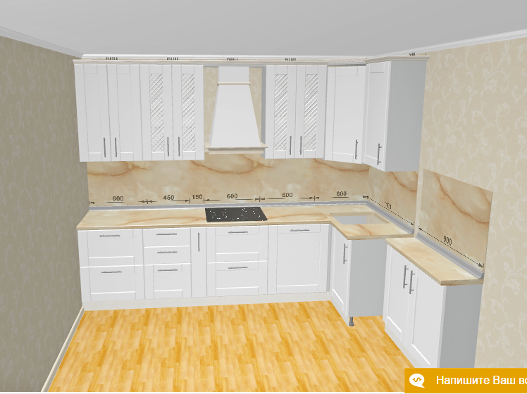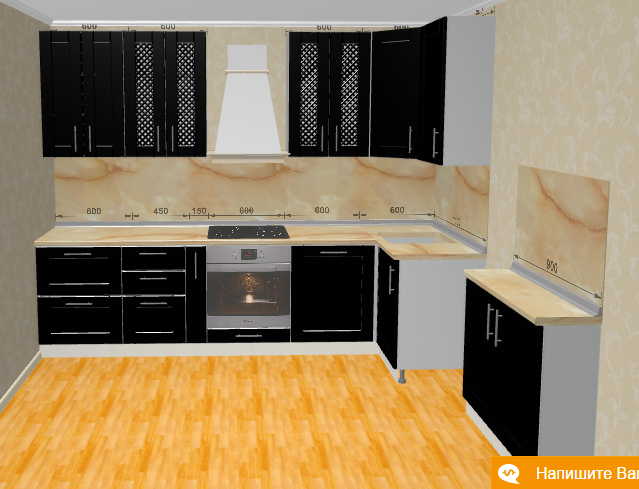 Размер стен для кухонного гарнитура 3000 * 2030(из них 900 это вент.короб к которому будет примыкать узкий шкаф)