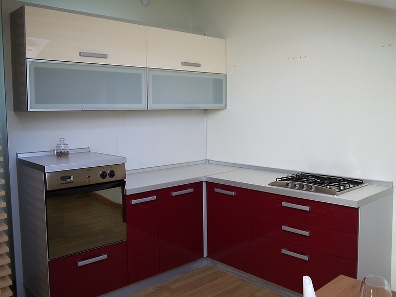 1. Классический вариант с плита + духовка стоят на полу, справа посудомойка и еще справа мойка. При этом раскладе получается нормальная по объему рабочая поверхность, но мало шкафов для кастрюль снизу. Опять же если ставить микроволновку на столешницу - место съедает.