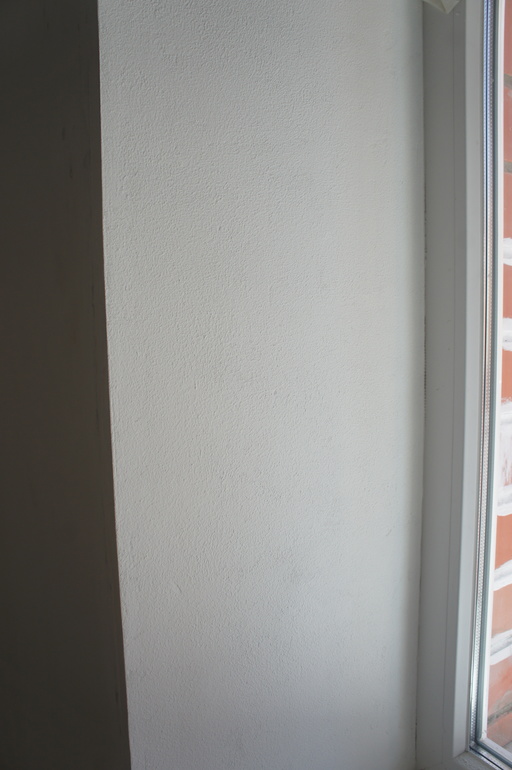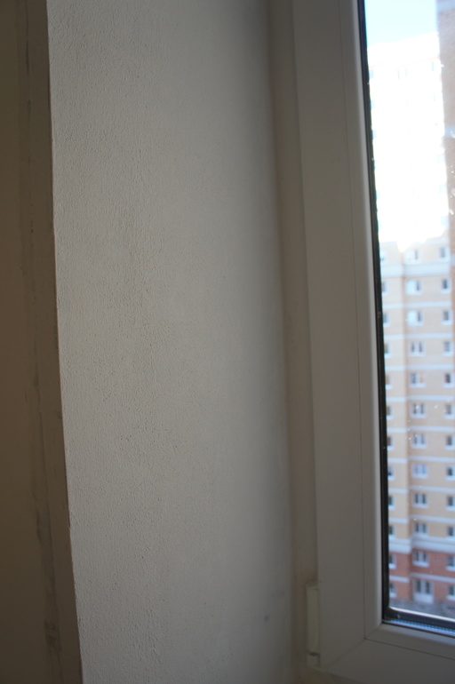 Как сделать "косяки" менее заметными? Научил брат, он тоже любитель)))) Развела шпаклевку до консистенции жидкой сметаны и нанесла на откосы валиком, как краску. Валик с длинным ворсом оставил от "сметанки" мелкие пупырышки, которые хаотично рассеивают свет, и мелкие дефекты становятся незаметны.