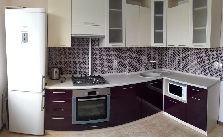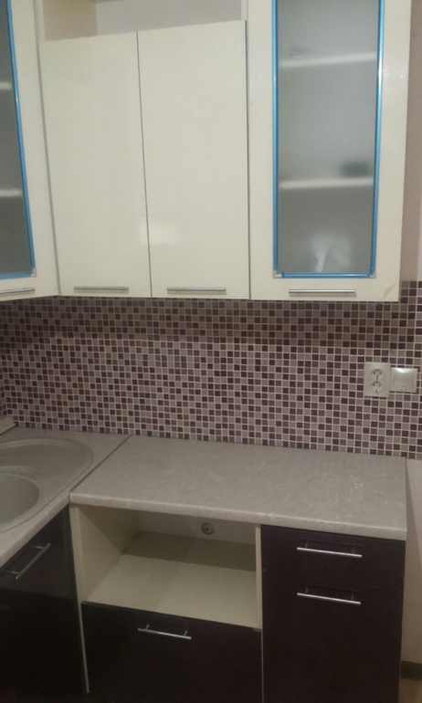 В реале цвет нижних фасадов светлее (баклажан - такой же как цвет мозаики). Пустое место займет холодильник... Когда в ремонте квартиры мы добрались до кухни - бюджет трещал по швам 😅 поэтому не особо разгонялись... и вот что получилось... что скажете?