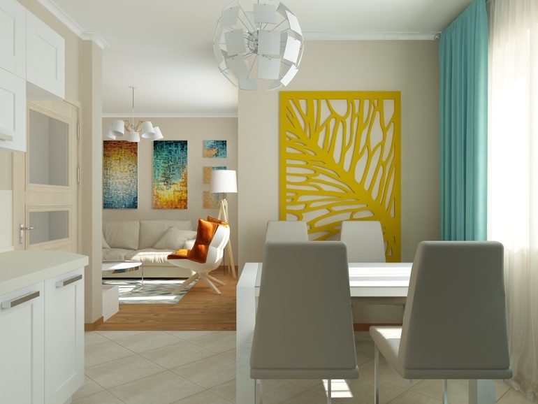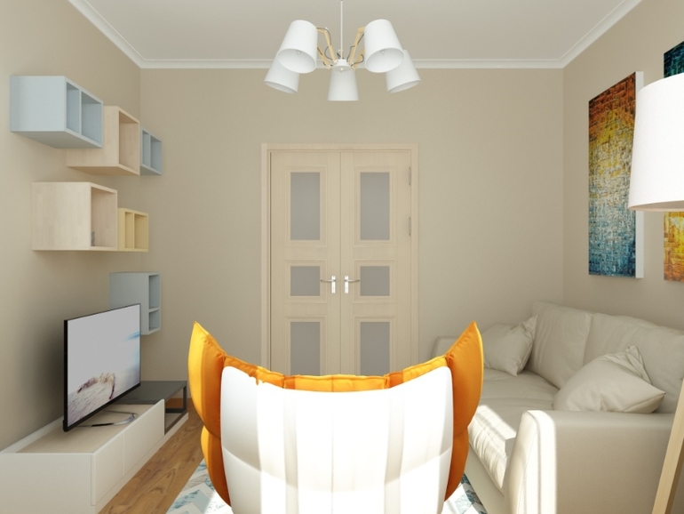 Интерьерное решение гостинойСегодня я хочу показать вам последнюю работу. Ко мне обратилась замечательная девушка с просьбой помочь подобрать мебель и декор в помещение с готовой отделкой. Кухонный гарнитур был уже заказан.