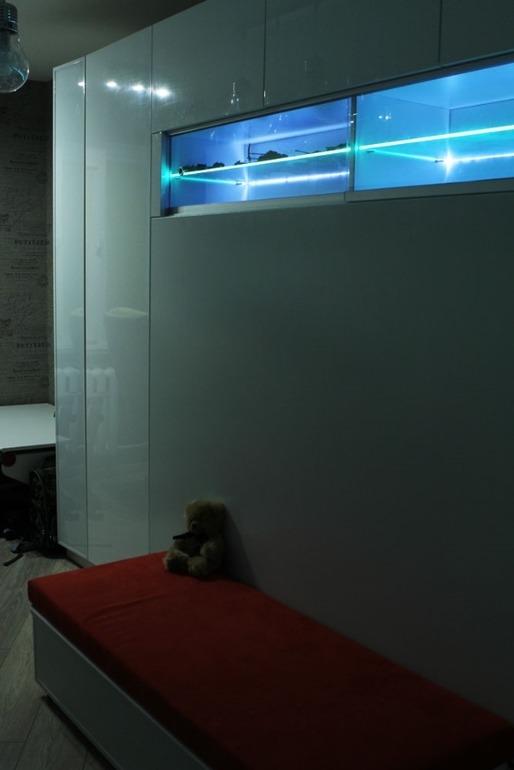 От себя могу добавить, что, несмотря на то, что мебель почти вся белоснежная, комната не выглядит хирургической палатой. Яркие пятна решают :) Ну и будущий ковер ещё поможет :) Мест для хранений столько, что пока половину нечем заполнять, не думала, что когда-нибудь скажу это :) ну и да, просторно в комнате, много воздуха :)