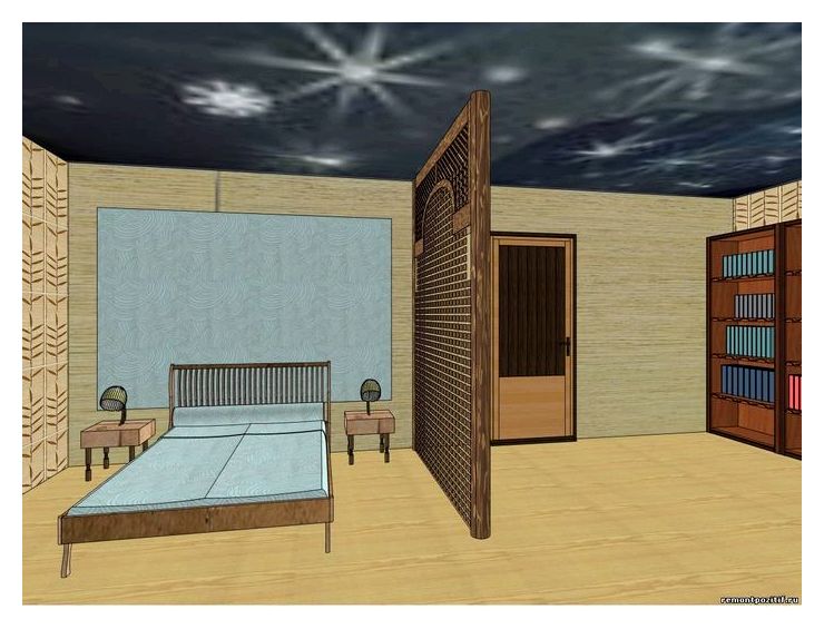 Изначально у меня была идея оставить маленькую спальню под детскую, объединить кухню с большой комнатой и сделать на получившейся площади три зоны (спальню, гостиную и кухню). Спальню отделить от гостиной с кухней стеной на полкомнаты из гипсокартона. Вроде этого