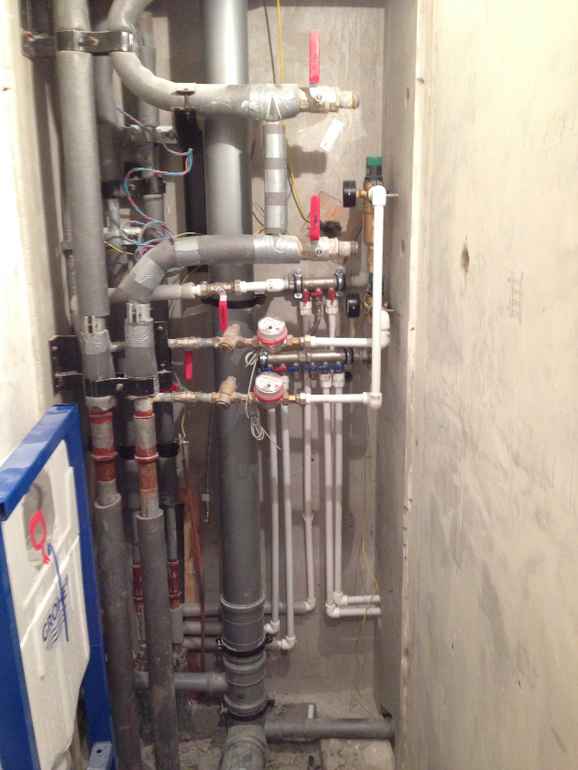 Трубы муж стал разводить тоже сам. Первый раз. накупил кучу труб и фитингов, аппарат для сварки труб. Делал один, тут я не могла ему помочь, т.к. дети были на мне, родители уже уехали на дачу. Так его жалко было, приезжал со стройки и горевал что ничего не сделал, ибо не получается. Говорит пришел сел и смотрю на эти трубы и плохо от того то не все получается. То трубы плохо спаяются, то не ровно или много/мало отрезал труб((( Короче горевал горевал, но сделал.