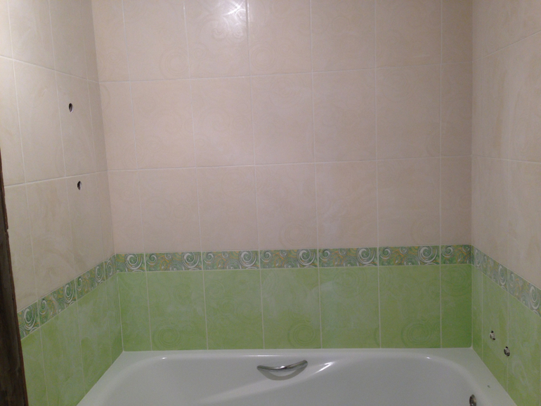 После этого пришла очередь ванны и плитки. Ванну хотели оставить от застройщика. Но поскольку когда мы штукатурили стены, я ведра мыла в ванной, и грубо говоря всю ее уделала. И не смогла потом отмыть. И мы решили все таки потратиться и купить ванну.