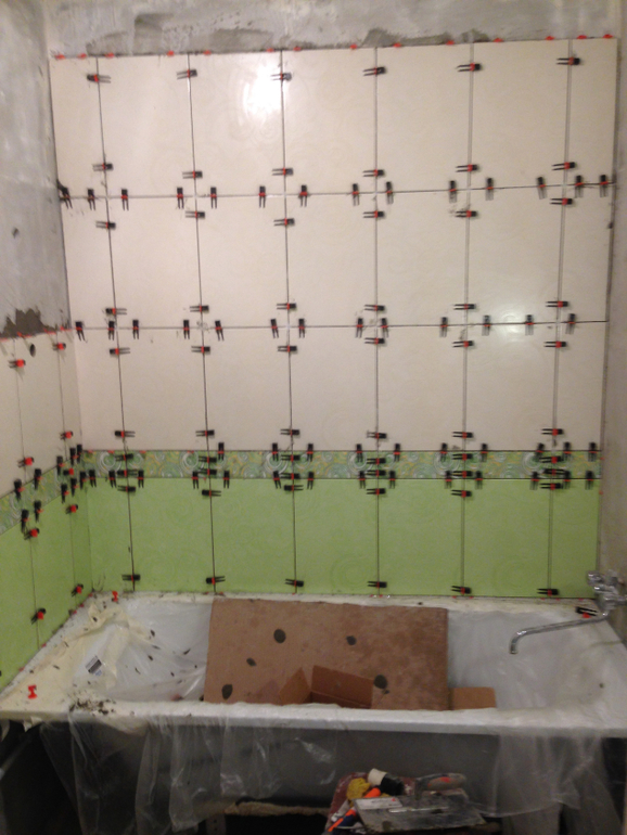 купили СВП (система выравнивания плитки), т.к. боялись что не ровно уложим. Но и тут свои прелести. И косяков много. Но о них только мы знаем))))