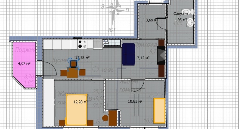 Изначально я думала сдвинуть стенку, уменьшить комнату. Но расставить мебель удобно не выходит. Получаются узкие комнаты.