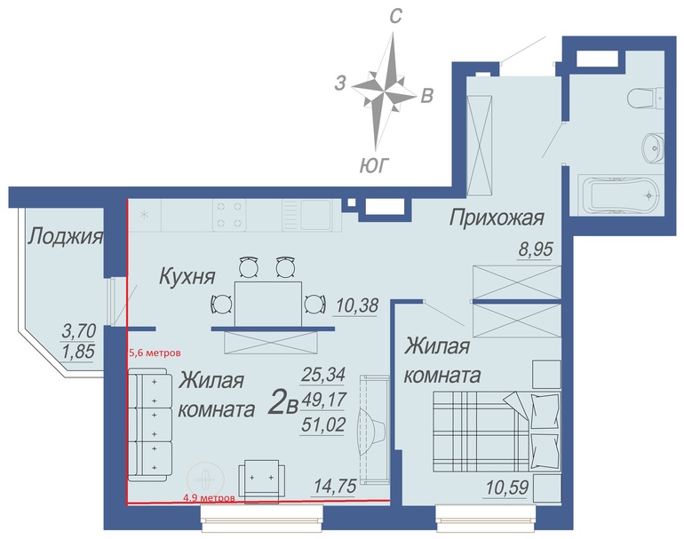 гостиная и кухня совмещены