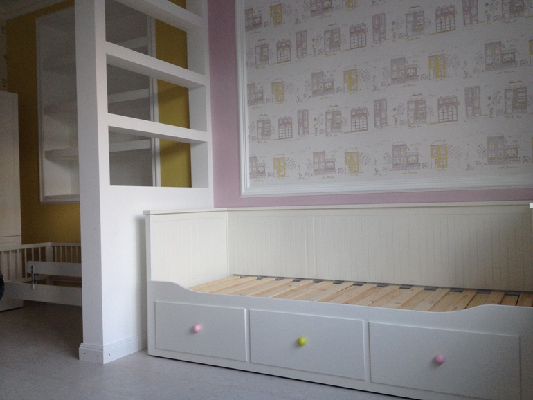 Декор окон. Текстиль. Жалюзи.Девочки, сейчас выбираю шторы в детскую, никак не могу определиться, какую цветовую гамму выбрать. Может кто-нибудь подкинет интересных идей. Детская для двоих детей (девочки 7 лет и мальчика 4) поэтому хотелось бы нейтральную цветовую гамму. И вот тут у меня затык((( окно находится в девчачьей зоне и достаточно большое 180см, стены розово-сиреневые, есть еще панно в котором присутствует лимонный, серый, сиреневы, ну и белый. Думала повесить белый матовый тюль и шторы из такого же тюля скомбинировав серый с розовым... но не знаю будет ли красиво... или серый с желтым? или с белым? Короче, совсем запуталась, выручайте!!! Перед окном будет письменный стол, а шторы хотела длинные, будет ли красиво? или лучше короткие?Фото под катом.