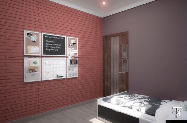 - дополнительное предложение дизайнера: учитывая непоседливость и забывчивость юного человека, было предложено сделать обоюдно удобную зону для сына и родителей - стенды.