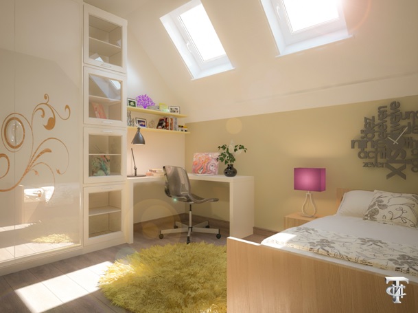 В основу дизайна легли более теплые нежные тона. Мягкий точечный свет уравновесил дополнительное оконное освещение для комфортного пребывания в комнате во время отдыха. Во время работы и личных занятий, предусмотрен дополнительный свет в каждой зоне.