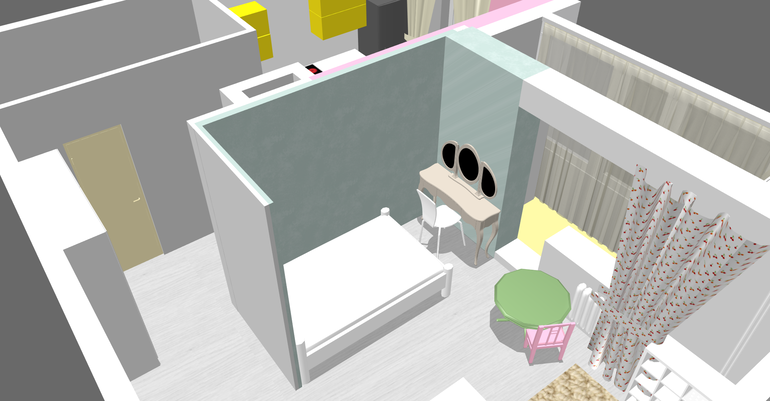 Где у Вас Косметический стол - там кроватку детскую для малыша (чтобы дети подальше были друг от друга и меньше будили.