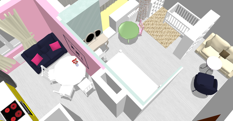 Посмотрите пожалуйста мои наброски, ума не приложу, как расставить мебель, чтобы все влезло. Комната 19 кв, с закутком, один ребенок почти 2 года, скоро появиться второй.