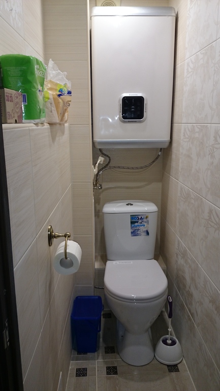 Да не то слово)))у нас вообще от туалета мало осталось места,мало того изначально маленький был,так ещё весь кривой,на выравнивание стен ушло много сантиметров,да ещё два короба,а то иначе всё в трубах было бы,так что то что от водонагревателя два шланга видно,это уже для нас мелочью кажется))