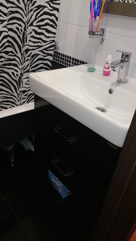 Ванная понравилась, люблю чб. Шторка супер подходит. В туалете очень смущают агрегат на виду, шланги, синее ведро и наставленное "барахло"(понятно что нужное, но спрятать бы)-портят вид. И из-за ширины помещения я бы кафель взяла однотонный. Но это имхо. В любом случае ремонт, особенно закончившийся это всегда радость, а потому поздравляю!!!