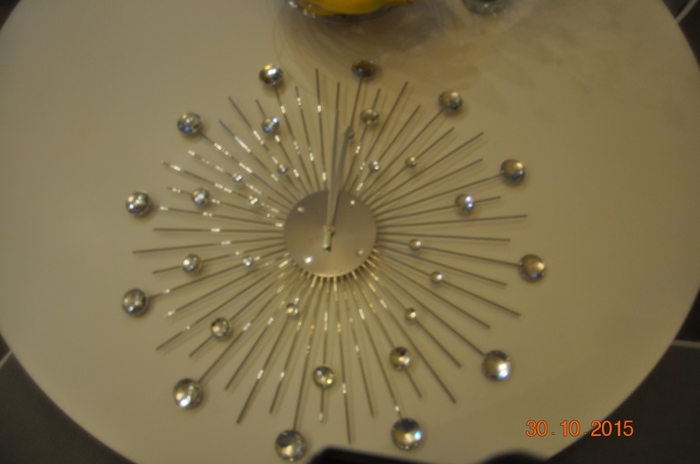 А вот часы и стена на которую предполагалось их повесить(на втором фото часы лежат на столе для того чтобы был понятен их размер: