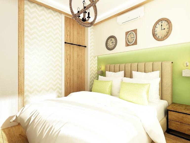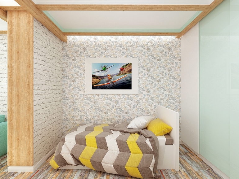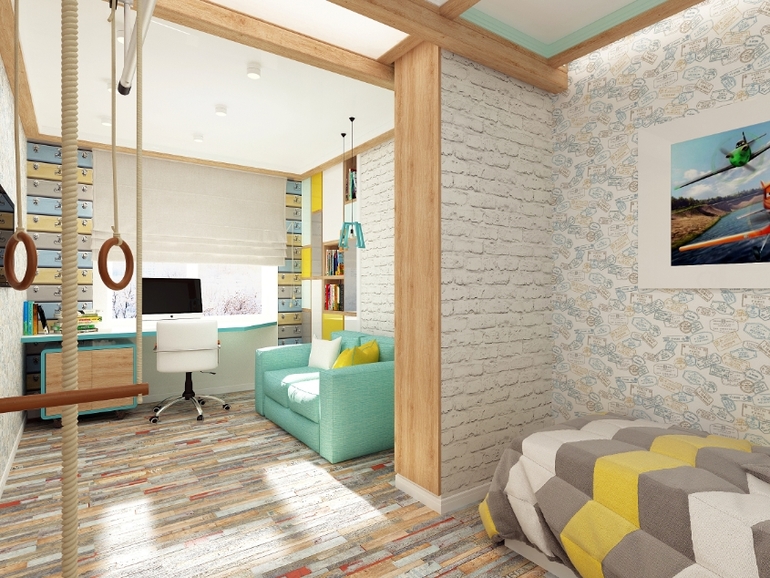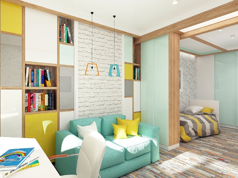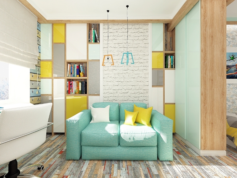 Также совершенно не к месту в проекте оттенки - нежно-голубой и нежно-салатовый - по крайней мере в таком количестве. Главная проблема в том, что это нежные оттенки из сытой, довольной пасторальной жизни, а никак не из брутального урбанистического лофта.