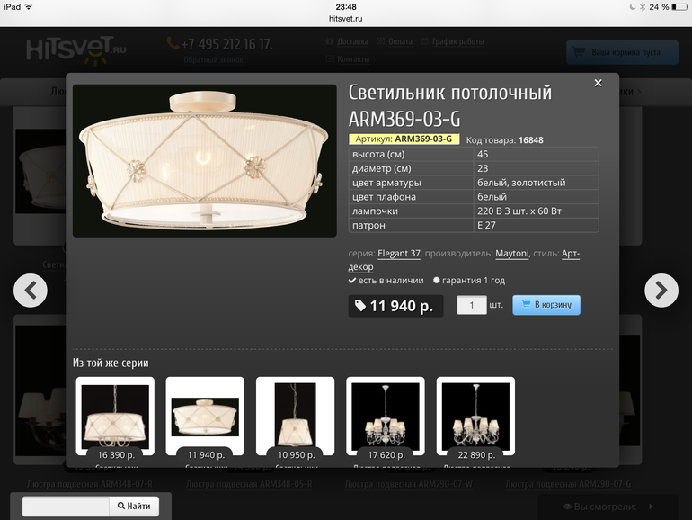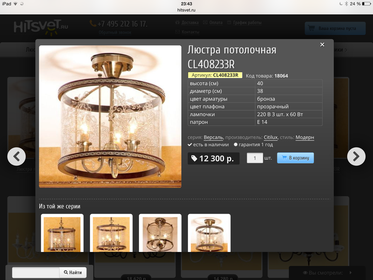 Анна, добрый вечер. Живых фото у меня нет, но есть закупка с данными светильниками. Могу сказать, что первая вам обойдется в 9153 руб вторая в 9611 руб.