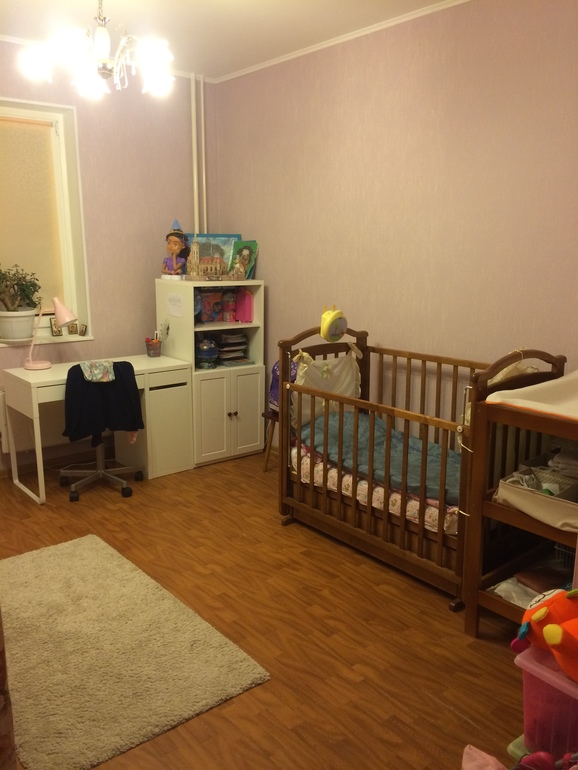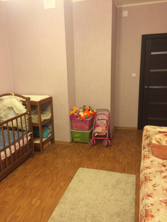 в планах конечно купить две одинаковые кровати, шкаф для одежды, и повесить шторы, но сейчас комната выглядит вот так :