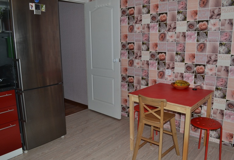 Площадь кухни 10 кв.м. Длина кухонного гарнитура 4,5 места, угловая (3,1 м по одной стене и 1,4 м по другой стене+холодильник).