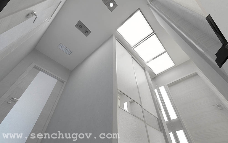 На потолке в прихожей расположены лайтбоксы.