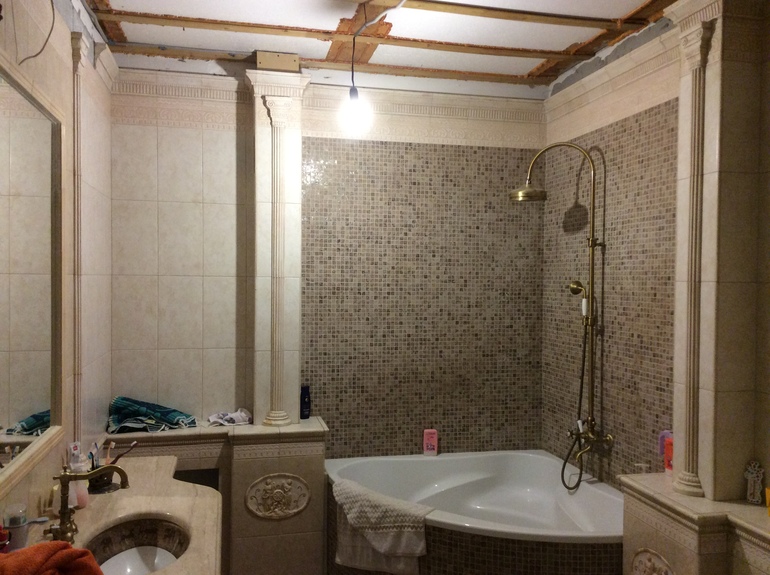 1. Посоветуйте потолки: а именно сделать просто ровный ( т к сам карниз плитки достаточно массивный) или уровневый сложный?. Т е спустить потолок до уровня плиточного карниза или ...?