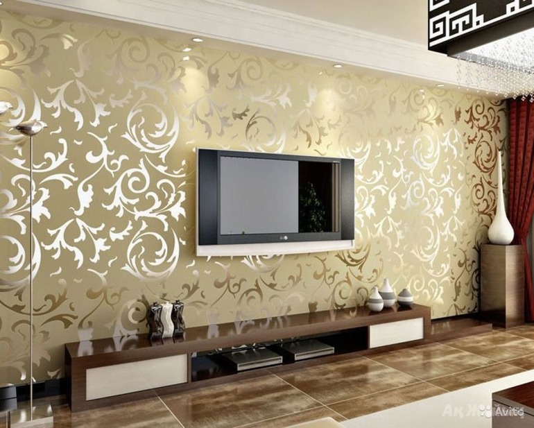 Делайте с узором одну стену но ту которая напротив дивана, чтоб не сливалось.