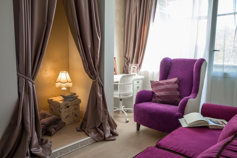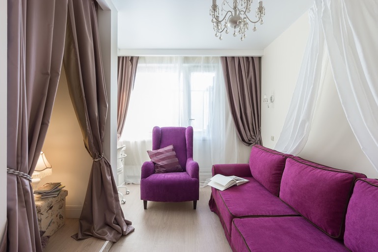 Второй вариант - портьеры подвязать необычными способами, дополнить белой вуалью и добавить света в комнату. Свет очень важен. Северная сторона совсем иначе представляет нам шторы и интерьер от южной. Так же как и восточная и западная.