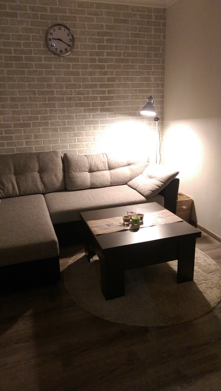 Ой))) История этой комнаты такая. У нас трешка смежно-изолированная. Отдельная маленькая комната и большая смежная с еще одной маленькой. Живем мы с свекром и он живет как раз в маленькой, которая смежная с большой. Ну и никак не желает оттуда перебираться в отдельную. Поэтому пришлось долго фантазировать что делать. Решение было следующим. Отдельную маленькую комнату сделать детской. А большую разделить на спальню для нас и гостиную. Так и сделали. Т.е. наша гостиная 2,5 на 3 метра с тремя дверными проемами)))) вот-другие ракурсы: