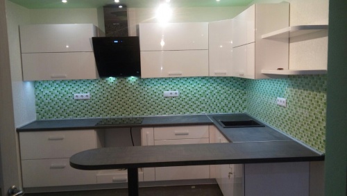 Красивая кухня!!! Из чего сделаны фасады? Я себе тоже заказала белую, только фартук чёрный глянцевый кабанчик. И тоже думаю про окно, точнее у меня дверь-окно, грубо говоря балконная дверь без окна, но по размерам она шире обыкновенной балконной двери. Но себе думала про белоснежный (или яркий) тюль на люверсах (такая система очень удобна в пользовании,ничего нигде не застревает при отдергивании штор, и почти всегда красиво ложится складочка). Типа таких