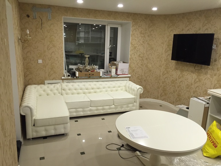 мне всё нравится,плитка ,бомбовский диван,стол ,а вот обои нет...светлее напрашивается..ну это моё мнение
