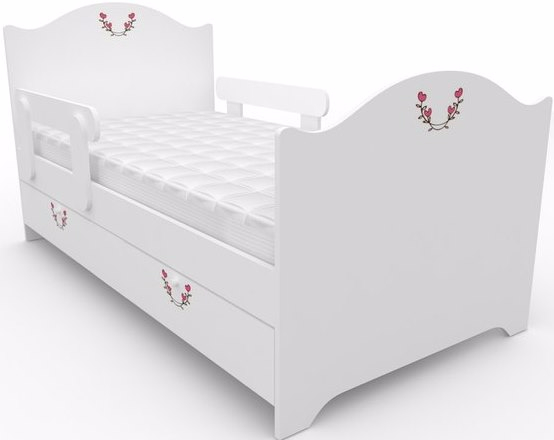 Кровати вот такие из дсп с фотопечатью (сердечки можно сделать нежно розовые (на фото они красные). На мой взгляд этот вариант не очень детский и возможно хватит на дольше, но тут вопрос к вам... Кровати с таким размером обычно до какого возраста актуальны?